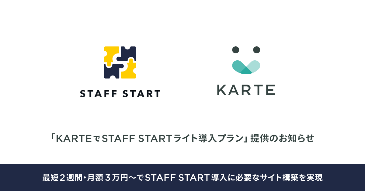 STAFF START、最短2週間・月額3万円〜KARTE連携でサイト構築不要の特別プラン提供のお知らせ