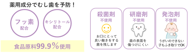 ・有効成分(フッ化ナトリウム)でむし歯を防ぐ