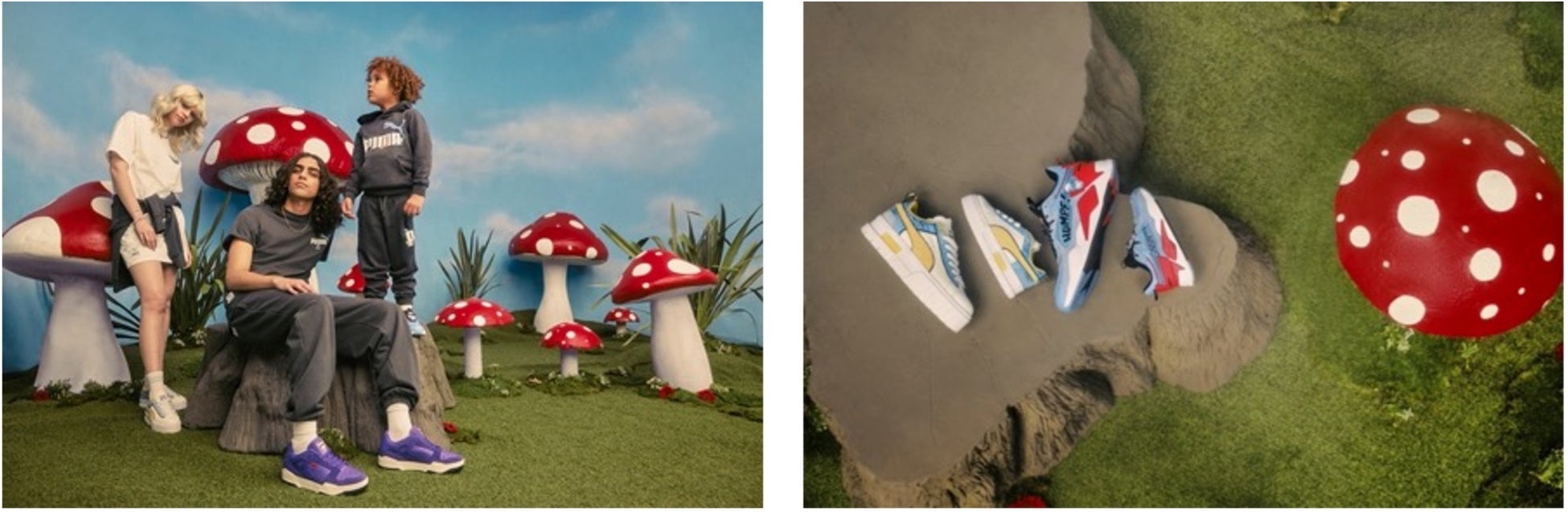 「PUMA x The Smurfs(プーマ x スマーフ)」は、スマーフの持つ冒険心をプーマのストリートウェアのシルエットで遊び心いっぱいに表現しています。本コレクションのポイントとなるのは、特別に制作されたプーマのロゴを囲んで戯れるスマーフをモチーフにしたグラフィックで、大胆なグラフィック使いや総柄プリント、一部商品にはリサイクル素材が随所に取り入れられているのも特徴です。キッズサイズと大人サイズで展開するアパレルとシューズを含む本コレクションには、それぞれ異なるスマーフのキャラクターにインスパイアされたシューズもラインアップしています。