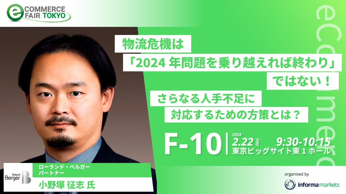 インフォーマ マーケッツ ジャパン株式会社(東京都千代田区、代表取締役社長:クリストファー・イブ)は、2024年2月21日(水)・22日(木)に、EC/通販業界専門のビジネスイベント「イーコマースフェア 東京 2024」を東京ビッグサイトにて開催いたします。参加企業は約200社を予定しており、約120講演開催するセミナーには業界のリーディングカンパニーが多数登壇します。