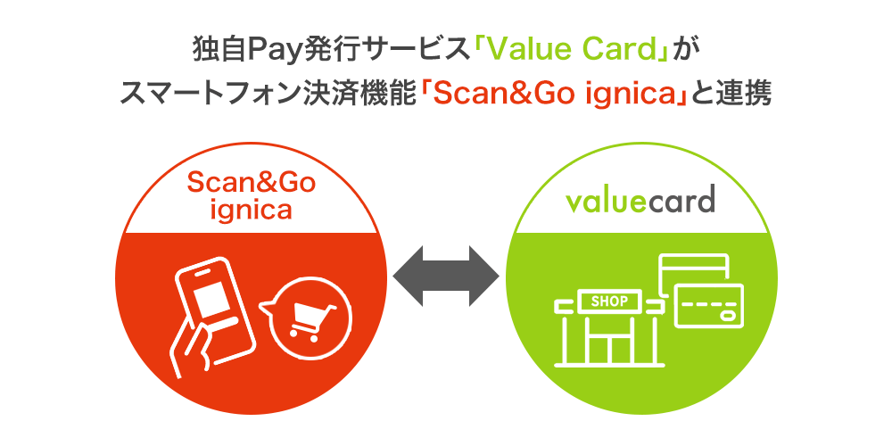 今回、U.S.M.Hが開発したスマートフォン決済機能「Scan&Go ignica」のさらなる普及、また「Scan&Go ignica」を利用する消費者へのサービス向上を目的に、独自Pay発行サービス「Value Card」との連携に至りました。店舗においては、これまで支払い手段がクレジットカード、コード決済のみでしたが、今回の連携により独自Payでの支払いも可能となります。独自Payと連携することで、再来店の促進、ロイヤルカスタマーの育成を可能にし、店舗の売上向上を支援します。