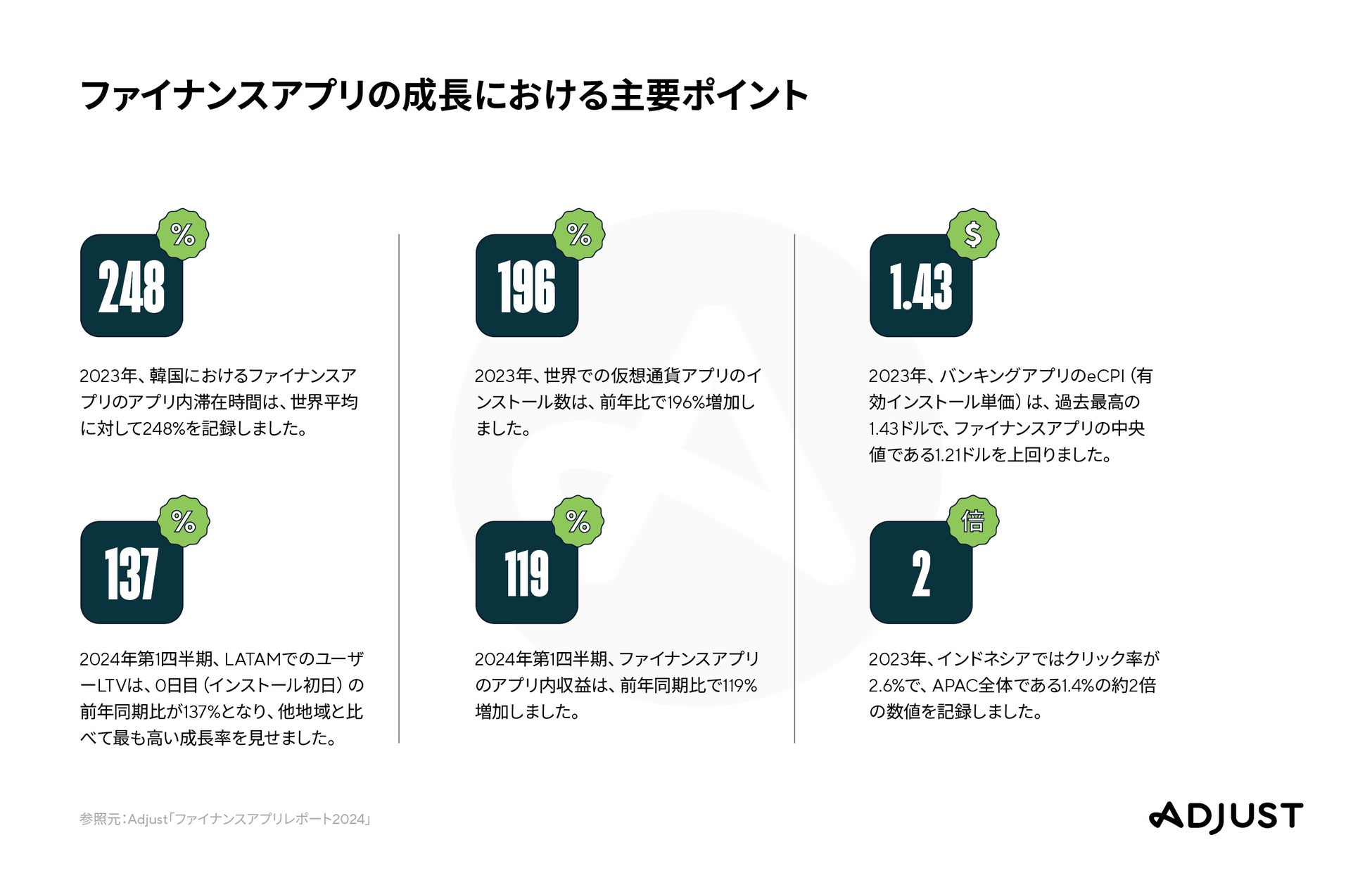 Adjust 、最新の「ファイナンスアプリレポート」を発表 世界のファイナンスアプリの収益が前年比119%増加、 2024年を通して業界が持続的に成長