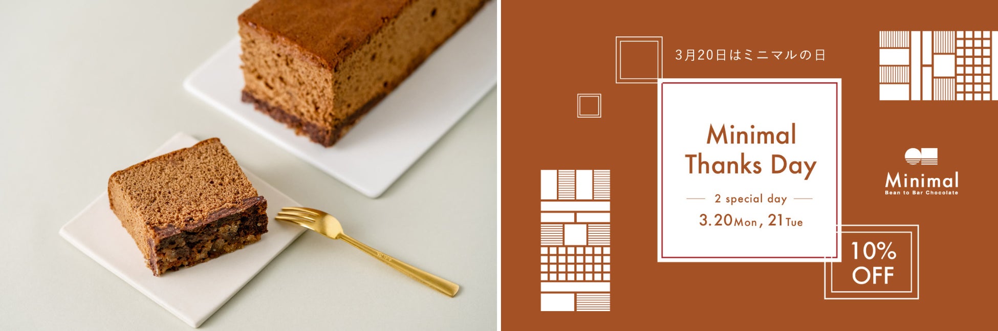 株式会社βace(東京都渋谷区、代表取締役:山下貴嗣)が展開する、日本発のスペシャルティチョコレート専門店 「Minimal - Bean to Bar Chocolate - (ミニマル)」(https://mini-mal.tokyo/)は、2018年から2年間販売し、入荷の度に毎回完売していた「チョコレートカステラ」を、ミニマルの日の3月20日に限定復刻し数量限定で販売します。また、いつもご愛顧いただいている皆さまへ感謝の気持ちを込め、ミニマルの日限定で2つのお得な企画をご用意しています。※ミニマルの日:日頃からのお客様への感謝を示す日として、3/20を語呂合わせでミニマル(320)の日として定めました。