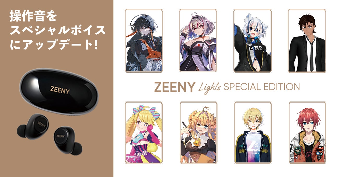 スマートイヤフォン「Zeeny Lights」「Zeeny Lights HD」を対象に、人気VTuberの操作音を搭載した期間限定「スペシャルエディション」を販売。