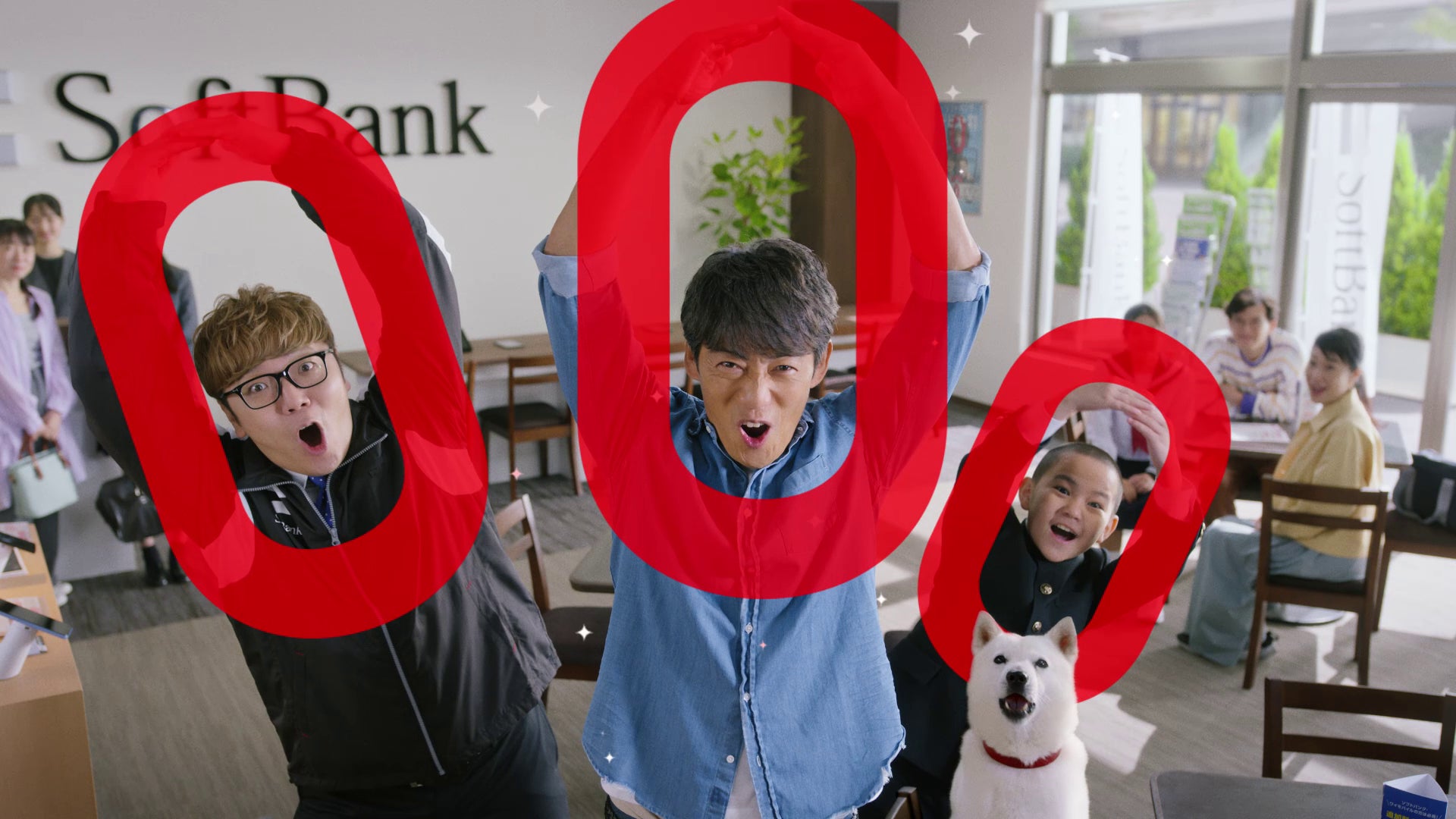 新テレビCMでは、ソフトバンクショップでスマホを欲しそうに眺める息子役の番家さんと、子どものスマホデビューについて心配そうにしている反町さんが登場。その背後からクルー役のHIKAKINさんが「通信料高そうで、不安で夜しか眠れないよ~」と反町さんの心の声をアフレコします。そんなお父さんを見て息子役の番家さんが「大丈夫?」と心配すると、HIKAKINさんが「そんな不安ゼロ~!」と大きな0(ゼロ)を腕で作り、お子さまのスマホデビューがおトクな「ソフトバンクデビュー割」を紹介します。HIKAKINさんの表現力溢れる立ち振る舞いや、3人の息のそろった0円ポーズなどコミカルな展開にぜひご注目ください。