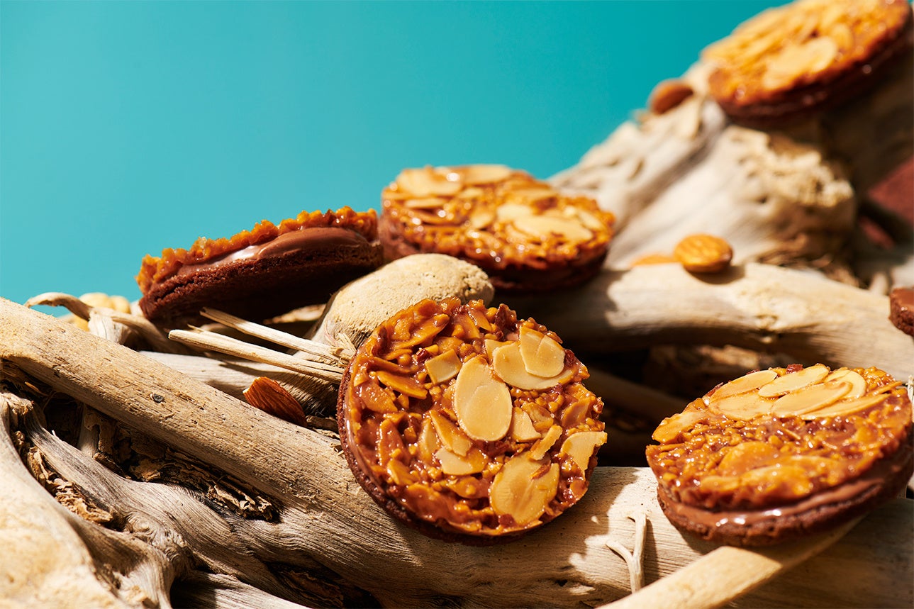 「アーモンドチュイル」「ジャンドゥーヤチョコレート」「シュトロイゼル」を3層に重ねた進化系フロランタンです。軽めの口当たりからは想像できないような【ザクザク、トロトロ、パリパリ】といった食感をお楽しみいただけます。