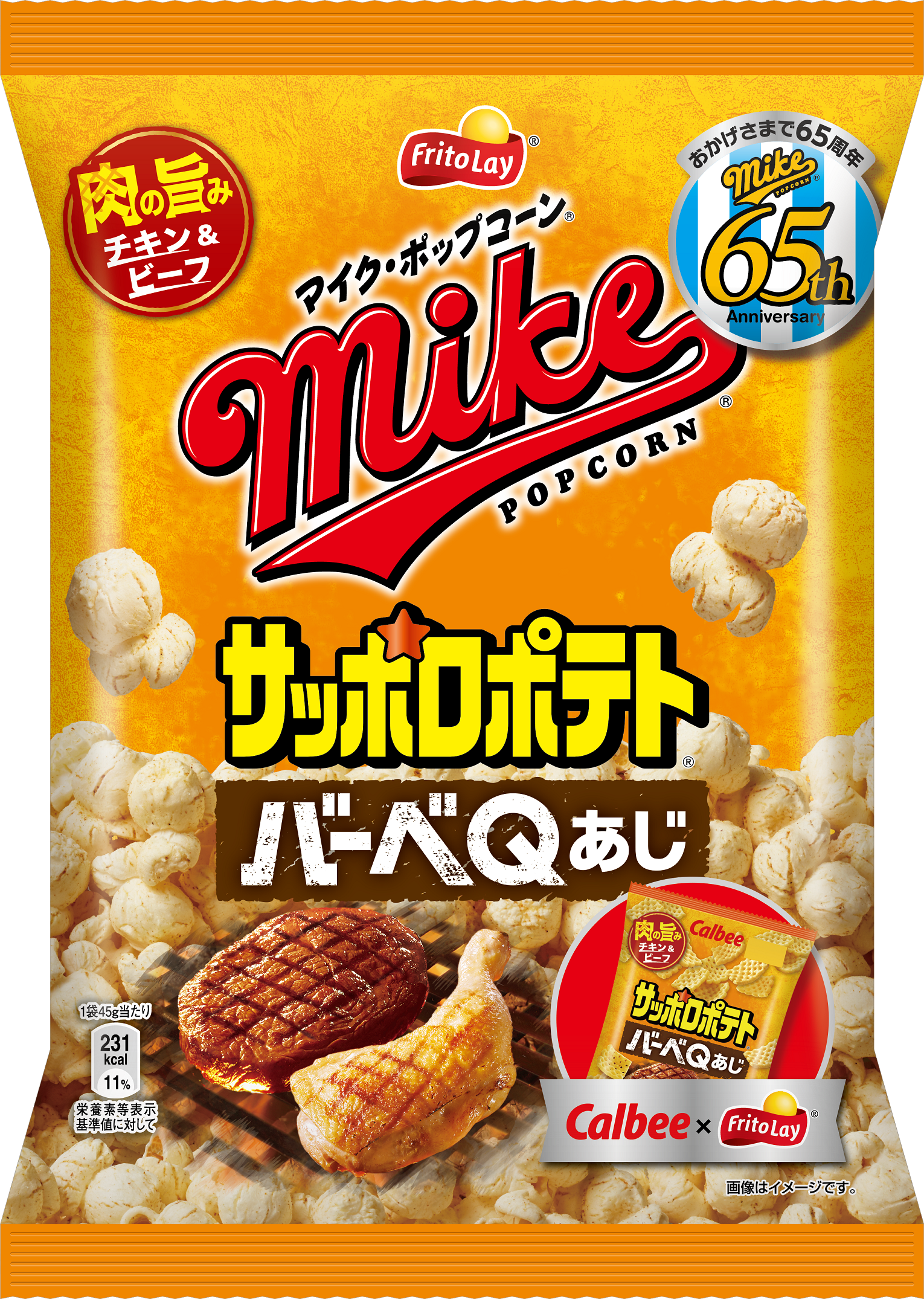 発売から今年で50周年を迎えた「サッポロポテト」と、65周年を迎えた「マイクポップコーン」のロングセラー同士のコラボレーションが実現しました。“サッポロポテトバーベQあじ”の特徴である、チキンとビーフの肉の旨みに、さらにスパイスをきかせることで、しっかりと濃厚な味わいに仕上げました。