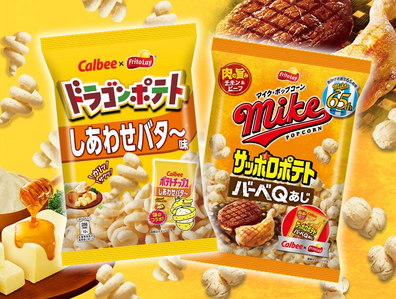 「Pop Your Time.あなたに、ひとつ上のワクワクを。」をコンセプトにスナック菓子を製造・販売するジャパンフリトレー株式会社(カルビーグループ、本社:茨城県古河市、代表取締役社長:松田 光弘)は、カルビーの「ポテトチップス しあわせバタ~味」とコラボレーションした『ドラゴンポテト しあわせバタ~味』を2022年1月24日(月)より発売開始します。