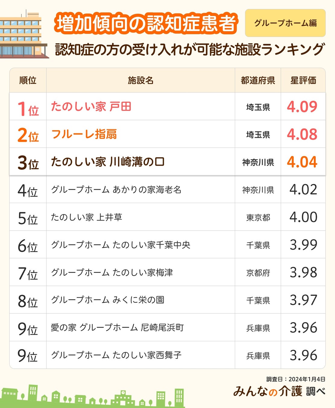 グループホーム編では首都圏の地域が多くランクインも、東京都は1施設のみ