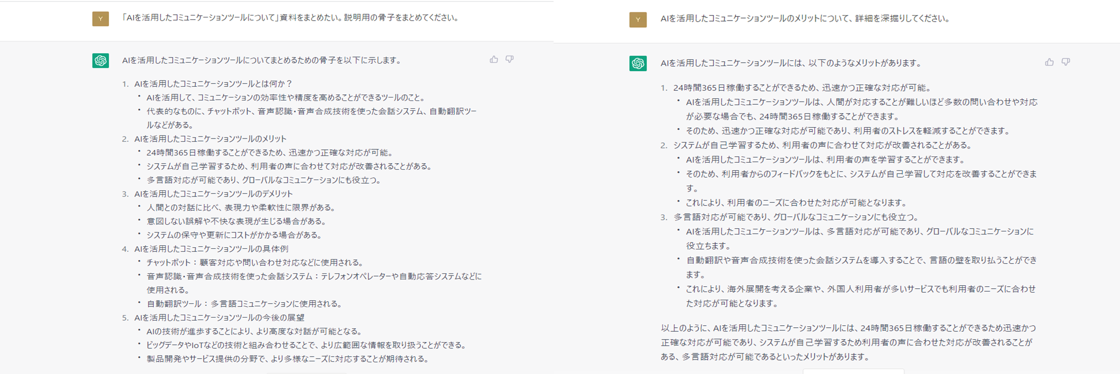 このChatGPTの助言機能を通じた取り組みは、利用企業におけるディスカッション時の円滑な議論の進行をはじめ、多言語翻訳、業界マーケットの状況把握、プレゼン資料作成、セミナー資料作成、営業戦略策定など初期策定にかかる時間の効率化・営業活動における効率化に親和性が高いものであると認識しております。