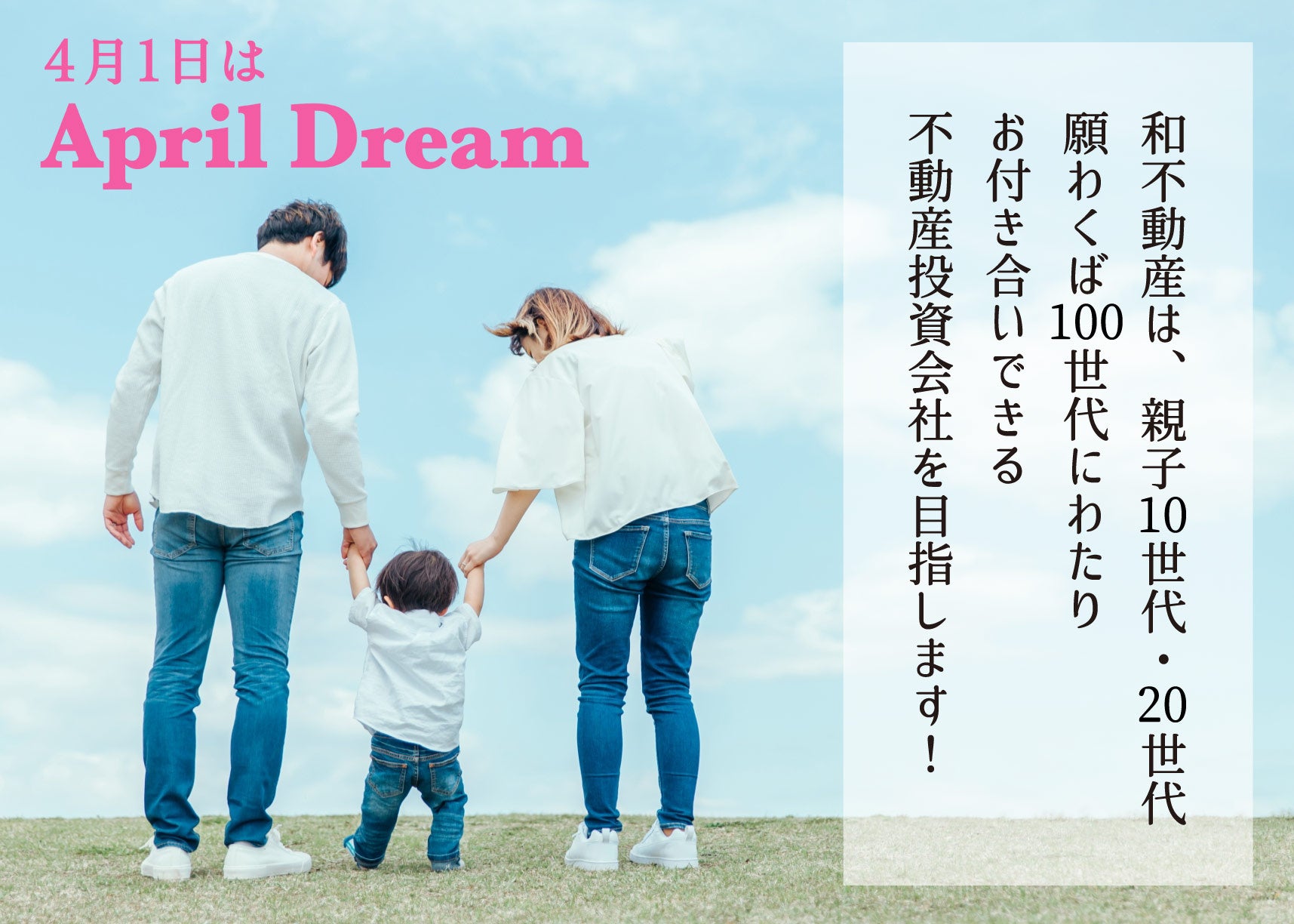 当社は、4月1日を夢を発信する日にしようとするApril Dreamに賛同しています。このプレスリリースは「株式会社和不動産」の夢です。