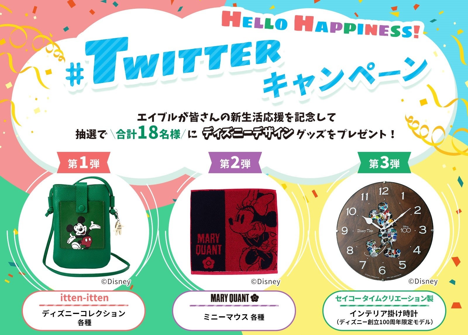 エイブル公式Twitterアカウントのフォロー&リツイートでディズニーデザインのグッズがもらえる!「Hello Happiness!Twitterキャンペーン」を実施!