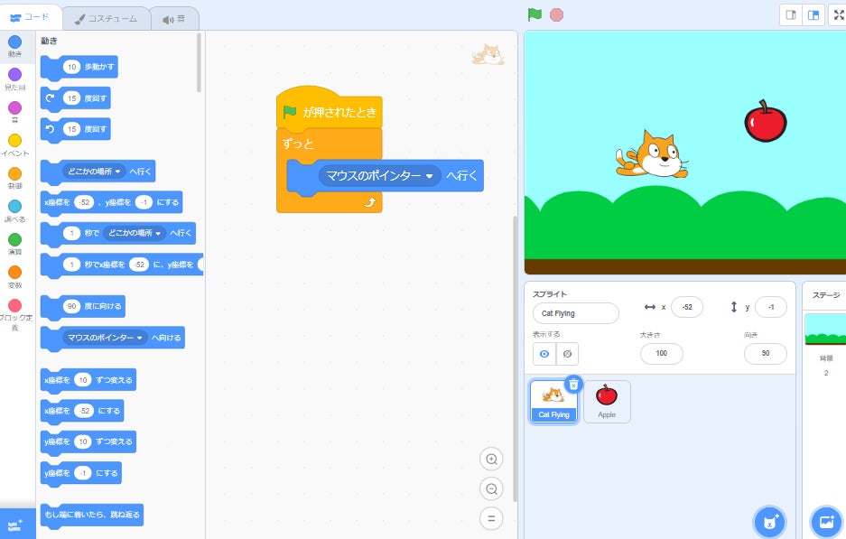Scratch(スクラッチ)を使用して、簡単なアニメーションやゲームを制作します。