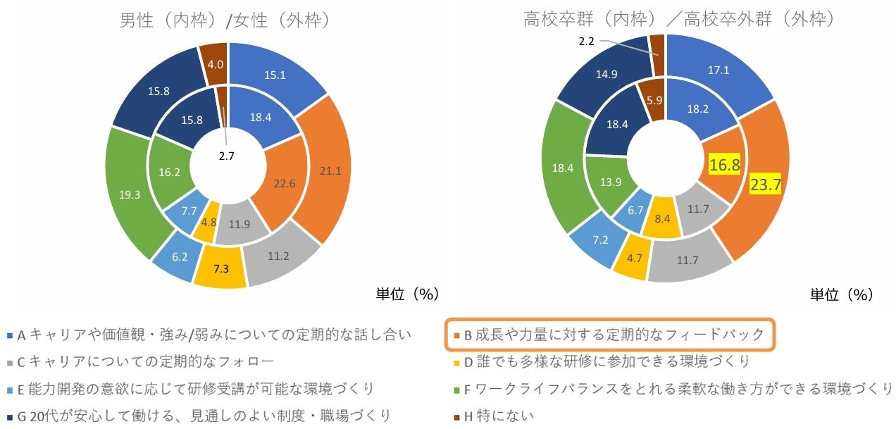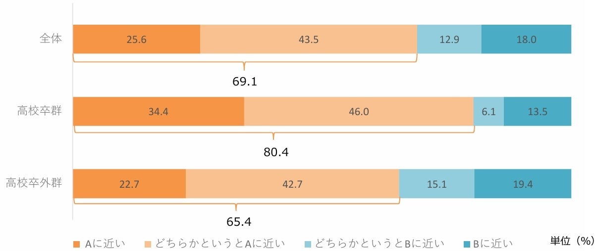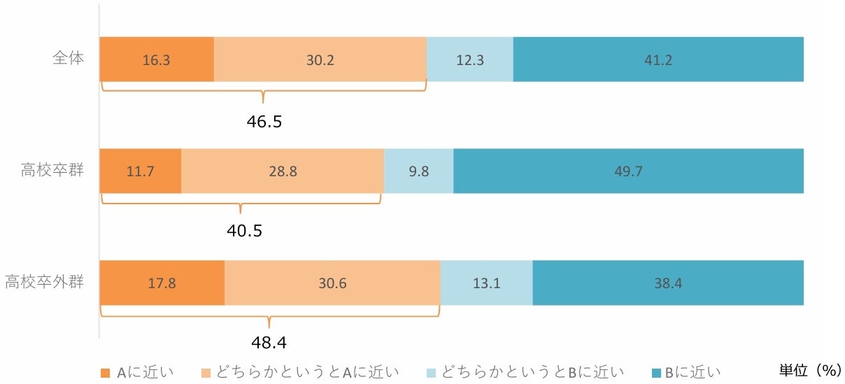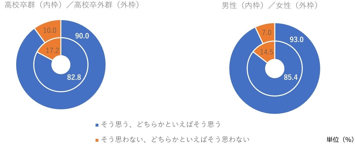 また、最終学歴が「高校卒業」を「高校卒群」、その他を「高校卒外群」として割合を集計しており、詳細へ反映しております。