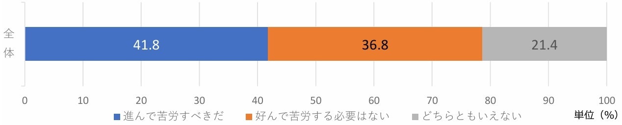 2.「若いうちは進んで苦労すべき」と思う人は4割、そう思わない人は3割でチャレンジ意欲が二極化