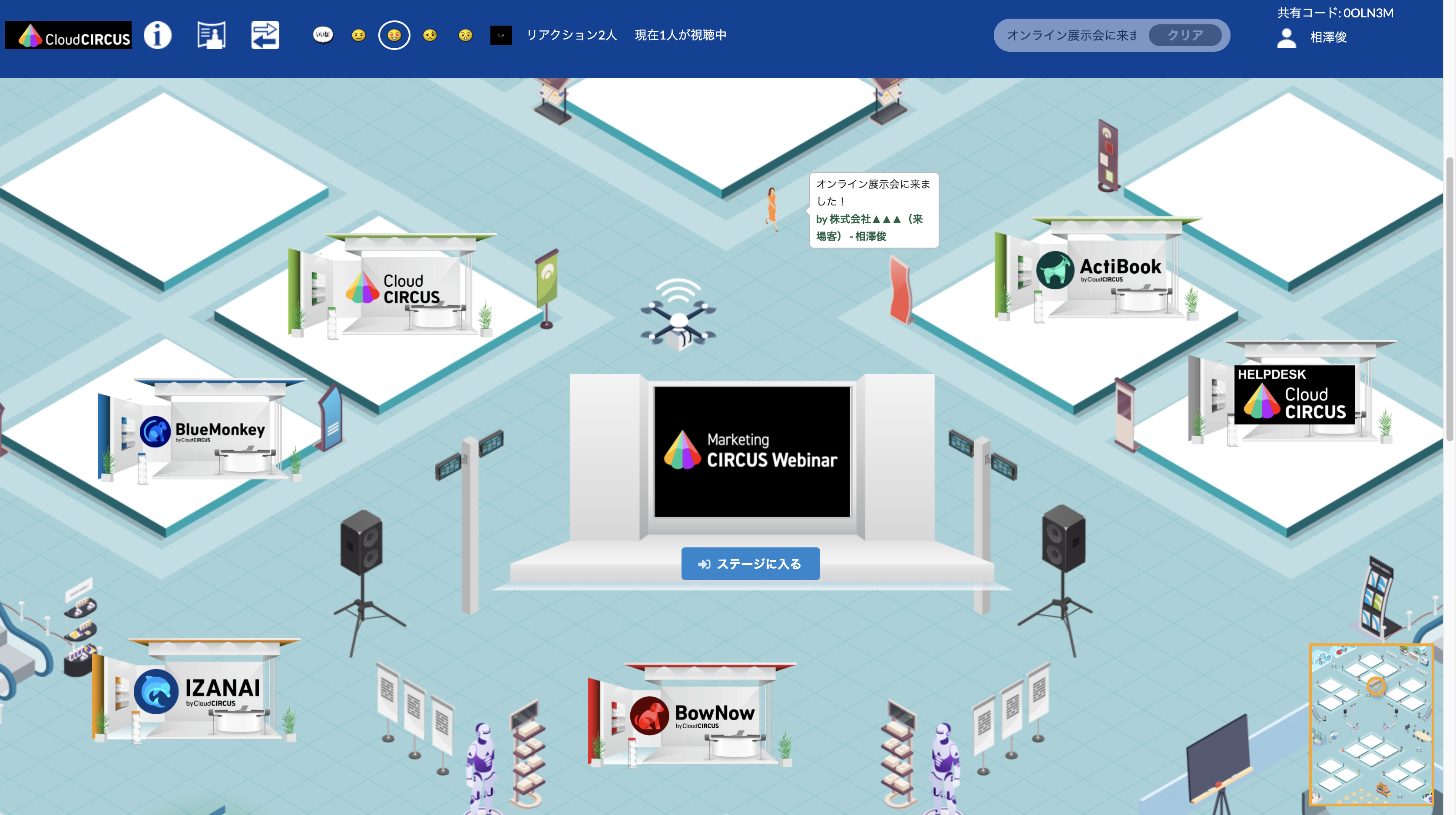 マップ上にはブースの他にアバターを表示することも可能。展示会ならではの賑わいの演出も可能です。