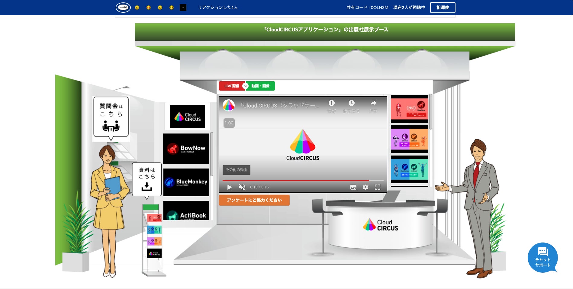 マップから展示会ブースに入ると、企業ごとの動画視聴や、資料ダウンロード、商談予約などが可能となります。