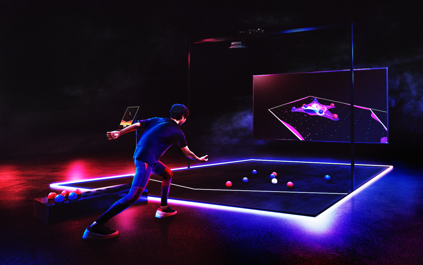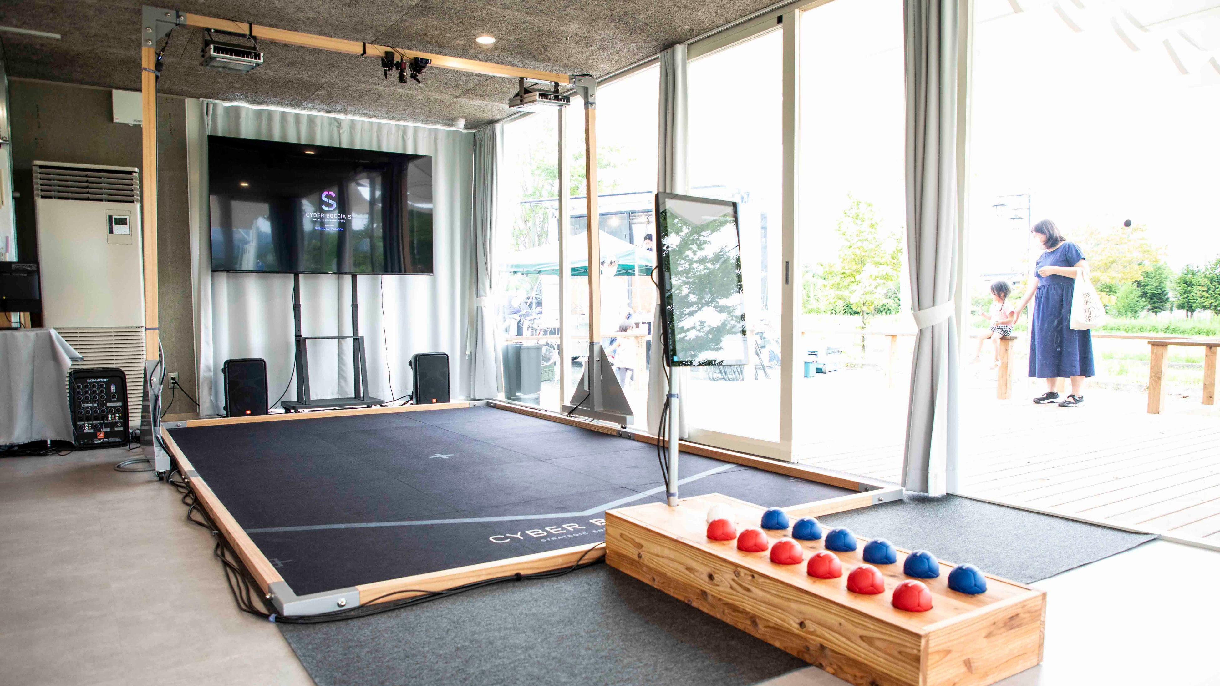 「CYBER SPORTS(サイバースポーツ)」※(2017年〜)プロジェクトのひとつで、パラリンピックの正式種目でもある「ボッチャ」を誰もが気軽に楽しめるよう、ルールはそのままにテクノロジーを使って拡張しエンターテインメント性を高めたコンテンツ。センシング技術でボールの位置を自動計測し、リアルタイムで状況を判断します。