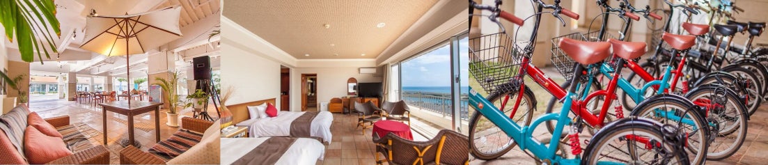 ホテルではシュノーケルやフィン、ライフジャケットなどマリンアクティビティに必要なアイテムが2,000円~レンタル可能で、アクティブに過ごしたい方にもピッタリです。屋上には海を見渡せる「サンセットテラス」があり、夕日や星空、朝日など宮古島の広い空と海をお楽しみいただけます。