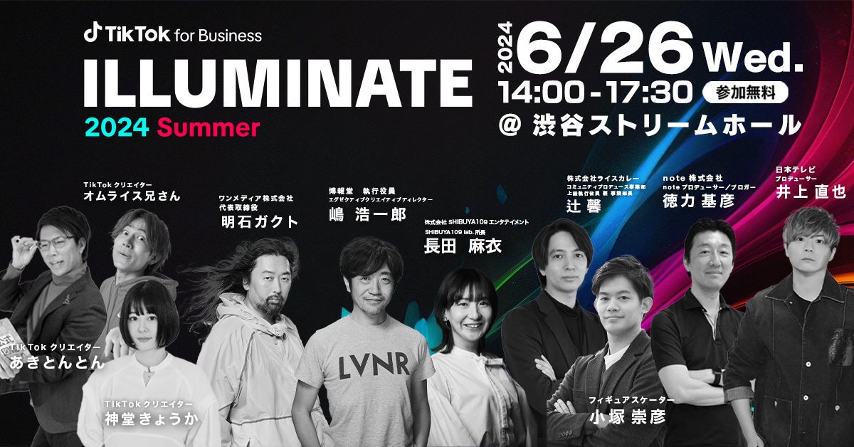 ショート動画のビジネスプラットフォームであるTikTok for Businessは、ショート動画を活用して新しいマーケティングに挑戦する人々を支援してきました。『ILLUMINATE』カンファレンスは、ショート動画をはじめとする新しいマーケティング手法にチャレンジし、ビジネスの成長を目指す人々を応援している取り組みです。