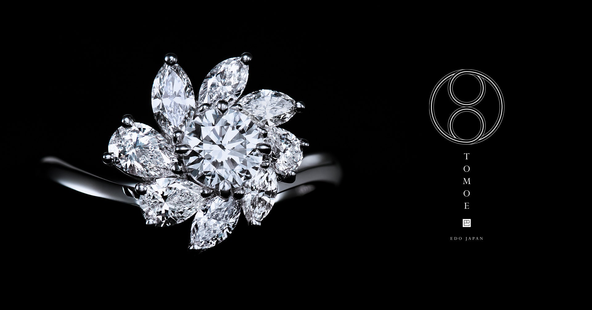 大粒のダイヤモンドをセンターストーンに用い、サイドストーンにはバラエティに富んだファンシーシェイプダイヤモンドを使用した、TOMOEのハイクオリティなシリーズです。