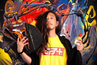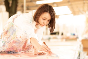 「色のすること」をテーマに掲げ、色と色の出合いから動きが生まれる創作を基軸に制作を行う美術作家です。記憶や意識に潜む色を捉え即興で行う対話描画(たいわびょうが)をはじめ、ライブペイント、本・プロダクトのアートワーク、舞台の空間演出を行っています。アート活動、商業デザインのみならず、 池袋駅公共地下道(ウイロード)再生事業など、 作家性を生かしつつも社会的にも非常に意味ある制作を手掛けています。