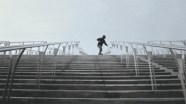 スケーターとなったあなたはただボードに預けた自分の重心をキープするだけで、階段をなんなく乗りこなすことができます。