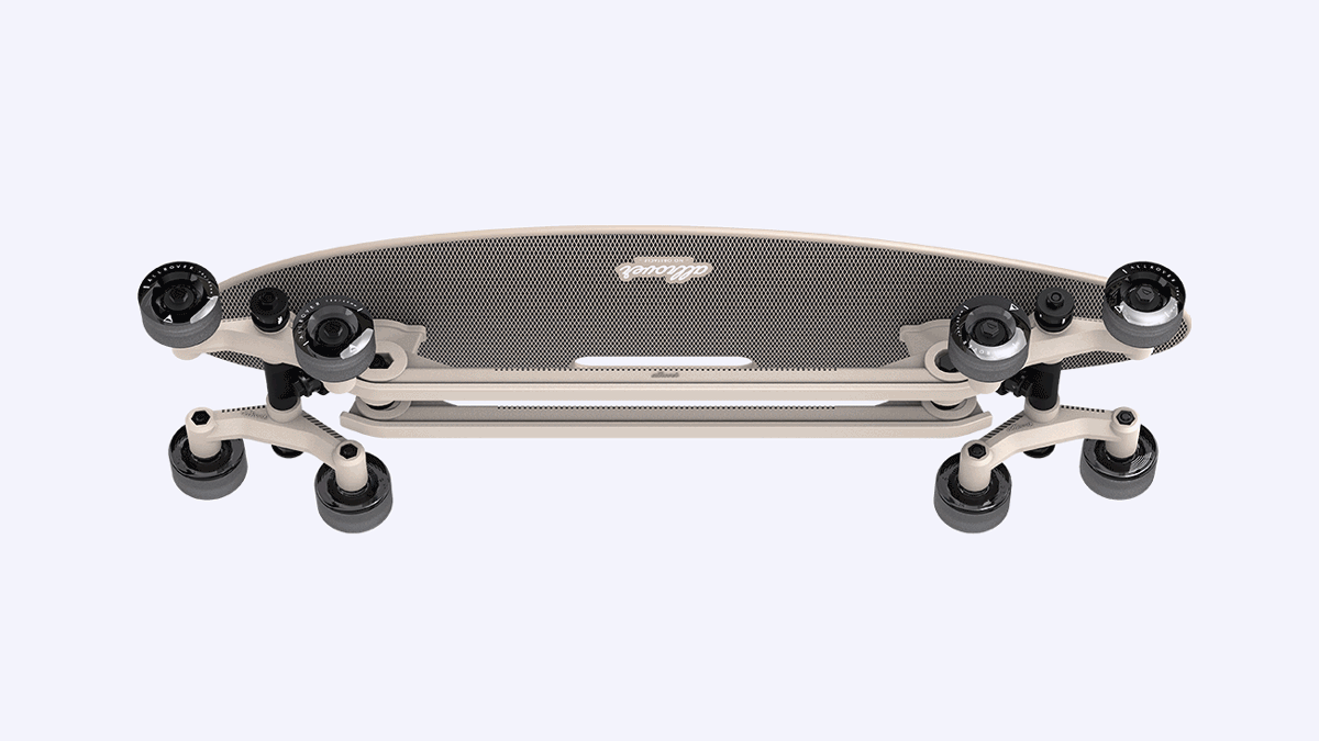 そしてボトムの「Gilding Keels(竜骨キール)」は弾性のあるパーツなので、スケーターが階段から乗り下りる時に、まるで波を切るボードのように滑らかに階段を駆け下ります。