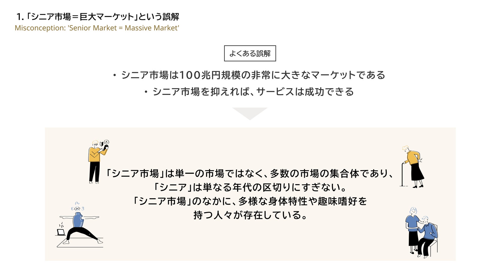 シニア市場で成功するには、この多様性を理解し、個々のニーズに対応するサービスを提供することが重要です。シニア全体を一括りにするのではなく、細分化されたニーズに応じたアプローチが求められます。