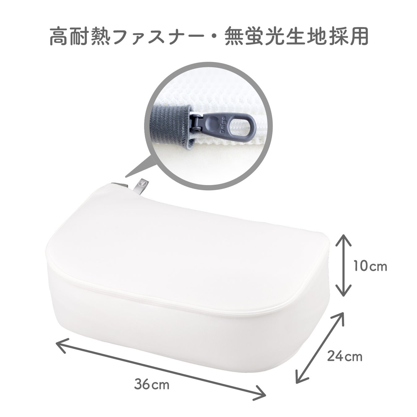 厚さ約3mmの「無蛍光マシュマロメッシュ」が洗濯時の衝撃を吸収し、糸くずの侵入を抑えながらやさしく洗うことができます。蛍光増白剤不使用で洗濯物や肌に優しく、無漂白で自然な風合いの生成り生地は、肌が敏感な人のお洗濯にも安心して使用いただけます。