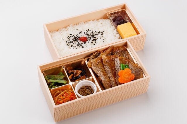 全ての和牛が「日山の和牛」になれる訳ではありません。“和牛名人”と呼ばれる生産者との関係性が生む、特別な黒毛和牛。シンプルであるがゆえに、肉の違いがわかりやすいビフテキというカタチでお弁当に。日山の黒毛和牛のおいしさを感じていただけることと自負しております。