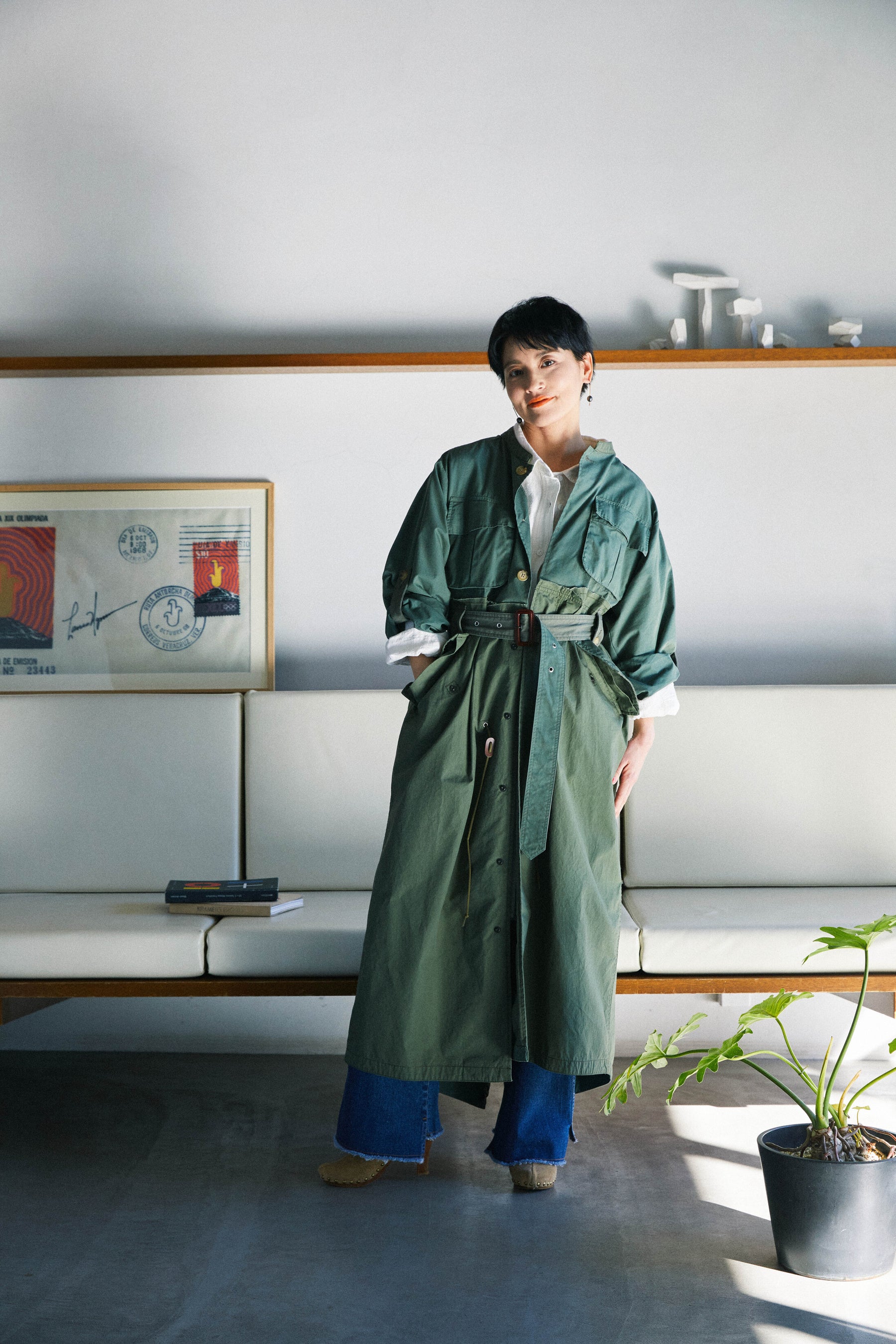 ・ミリタリーコートとミリタリーシャツが融合したリメイクライクなコートワンピース
