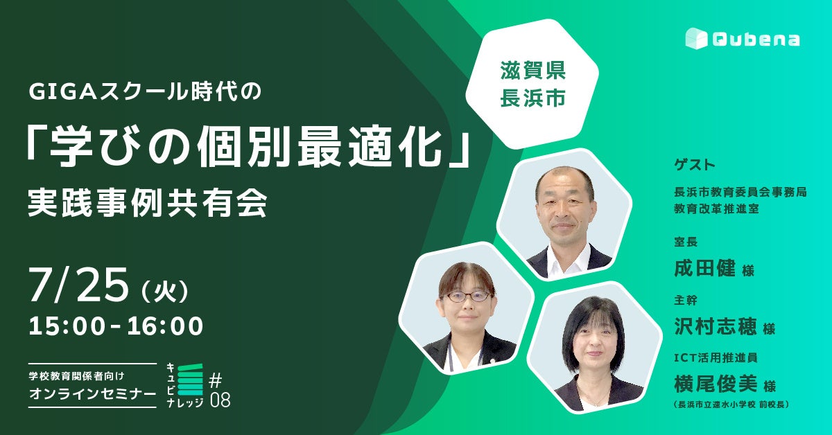 学習eポータル+AI型教材「Qubena(キュビナ)」の学校教育関係者向け活用事例セミナー「キュビナレッジ(Qubena×Knowledge)」を開催 ゲストは滋賀県長浜市