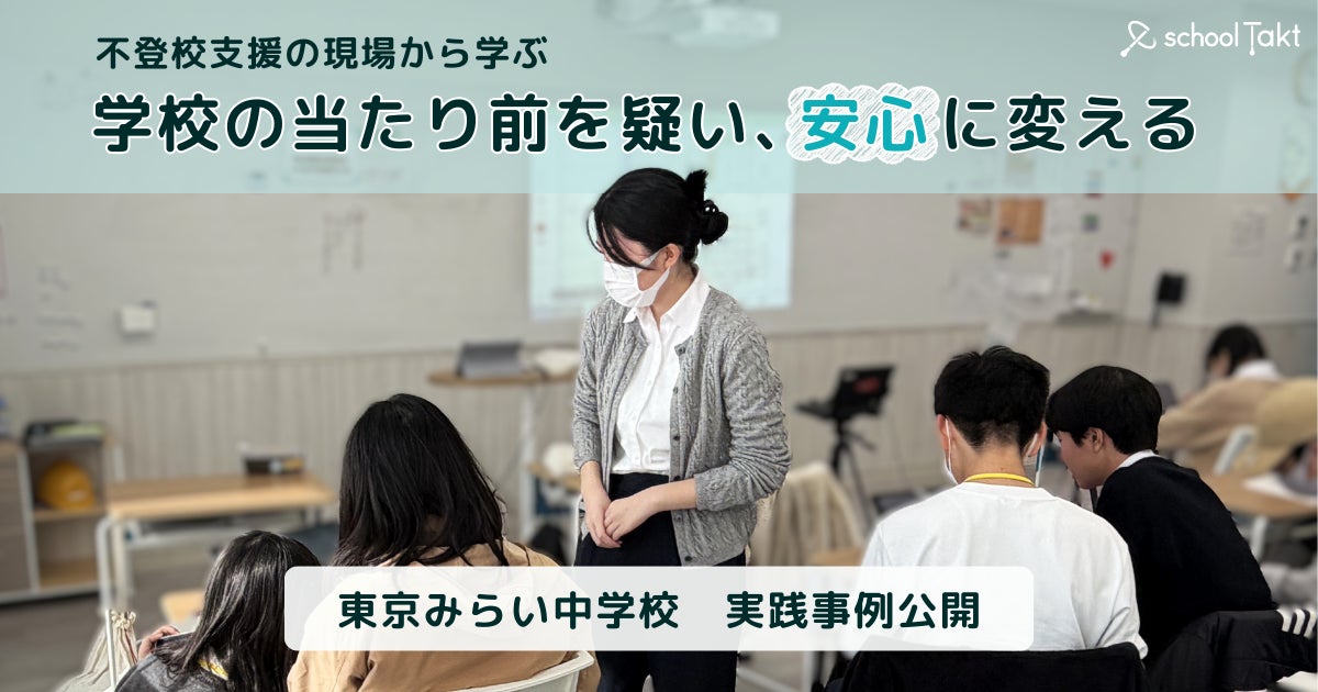 株式会社コードタクト(本社:東京都渋谷区、代表取締役CEO:後藤 正樹、以下「当社」)は、授業支援クラウド「スクールタクト」を導入する学びの多様化学校「東京みらい中学校」の実践事例を公式サイトにて公開しました。