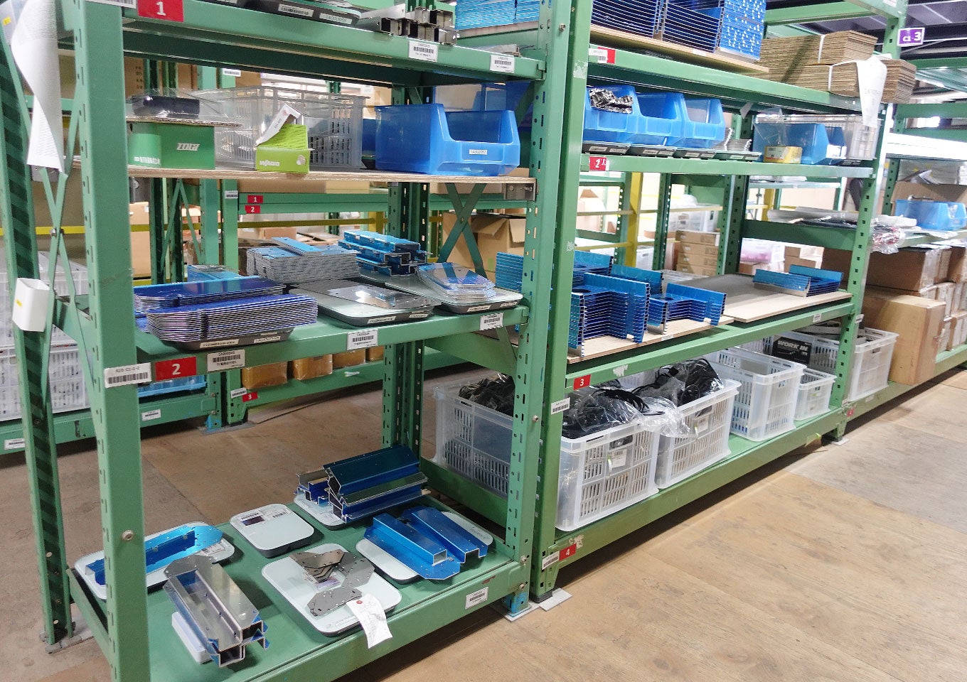 在庫管理工数を50〜60%削減し、棚スペースも整頓・有効活用