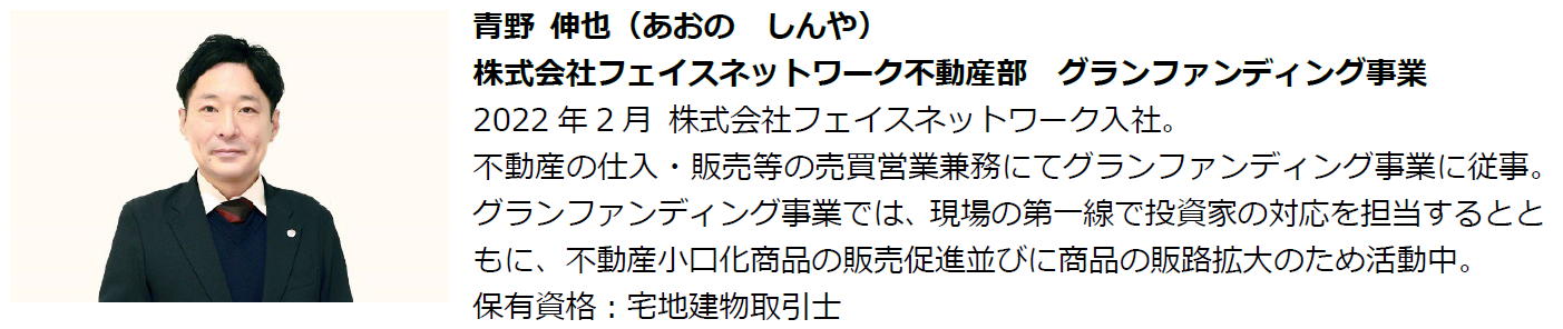 講演者:青野 伸也【株式会社フェイスネットワーク不動産部 グランファンディング事業】