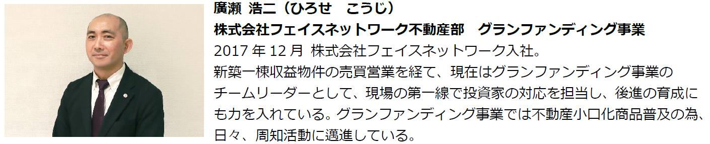 講演者:廣瀬 浩二【株式会社フェイスネットワーク不動産部 グランファンディング事業】