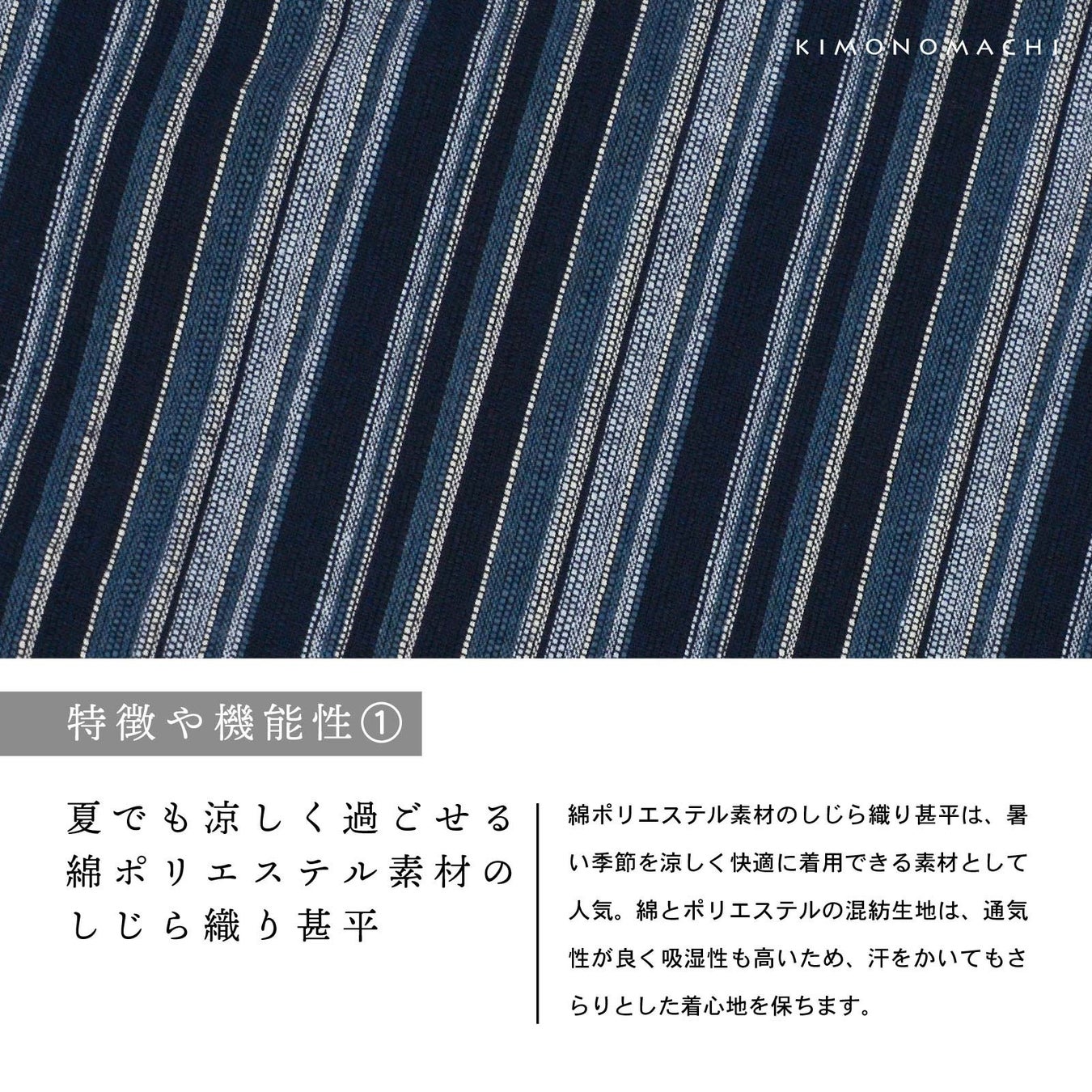 しじら織りは夏の衣料として好まれてきた伝統的な素材で、表面にシボが立っているため肌にまとわりつきにくいという特徴があります。見た目にも涼しげな透け感があり、汗をかいてもさらりとした着心地を保つので、暑がりが多いお子様や男性の甚平にぴったりの素材です。