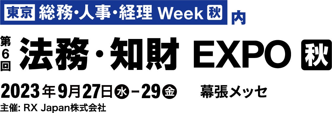 「第20回【東京】総務・人事・経理Week [秋]」は、RX Japan株式会社が主催する日本最大*のバックオフィス向け専門展示会です。展示会は9つの専門展で構成され、今回当社は9つの専門展の中でも法務に特化した「第6回 法務・知財EXPO 秋」に出展し、契約書管理クラウドサービス「Hubble(ハブル)」についてのデモンストレーションほか、活用事例などをご紹介します。また、ブースでは特別セミナーも実施します。