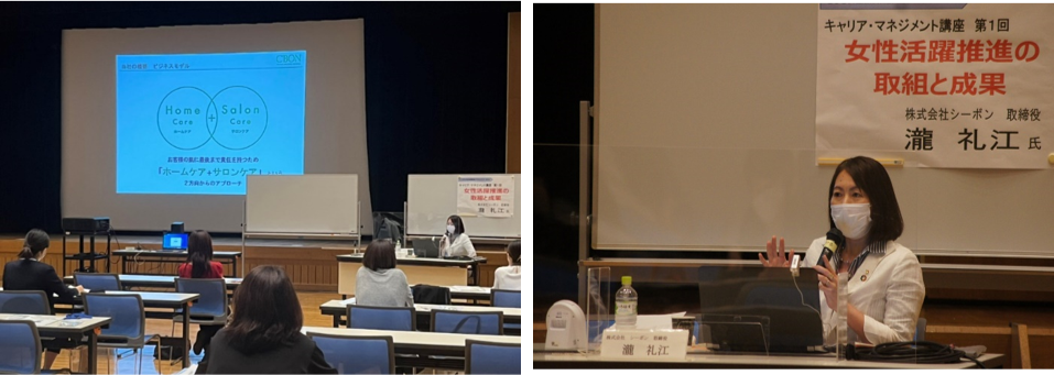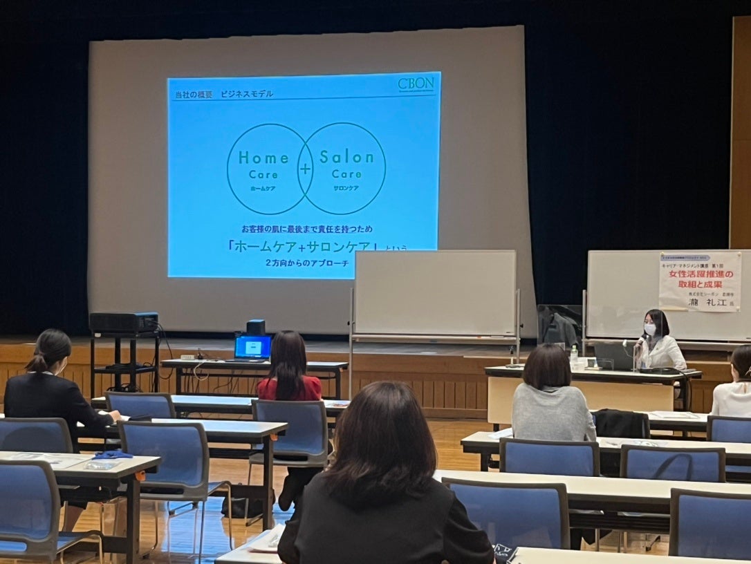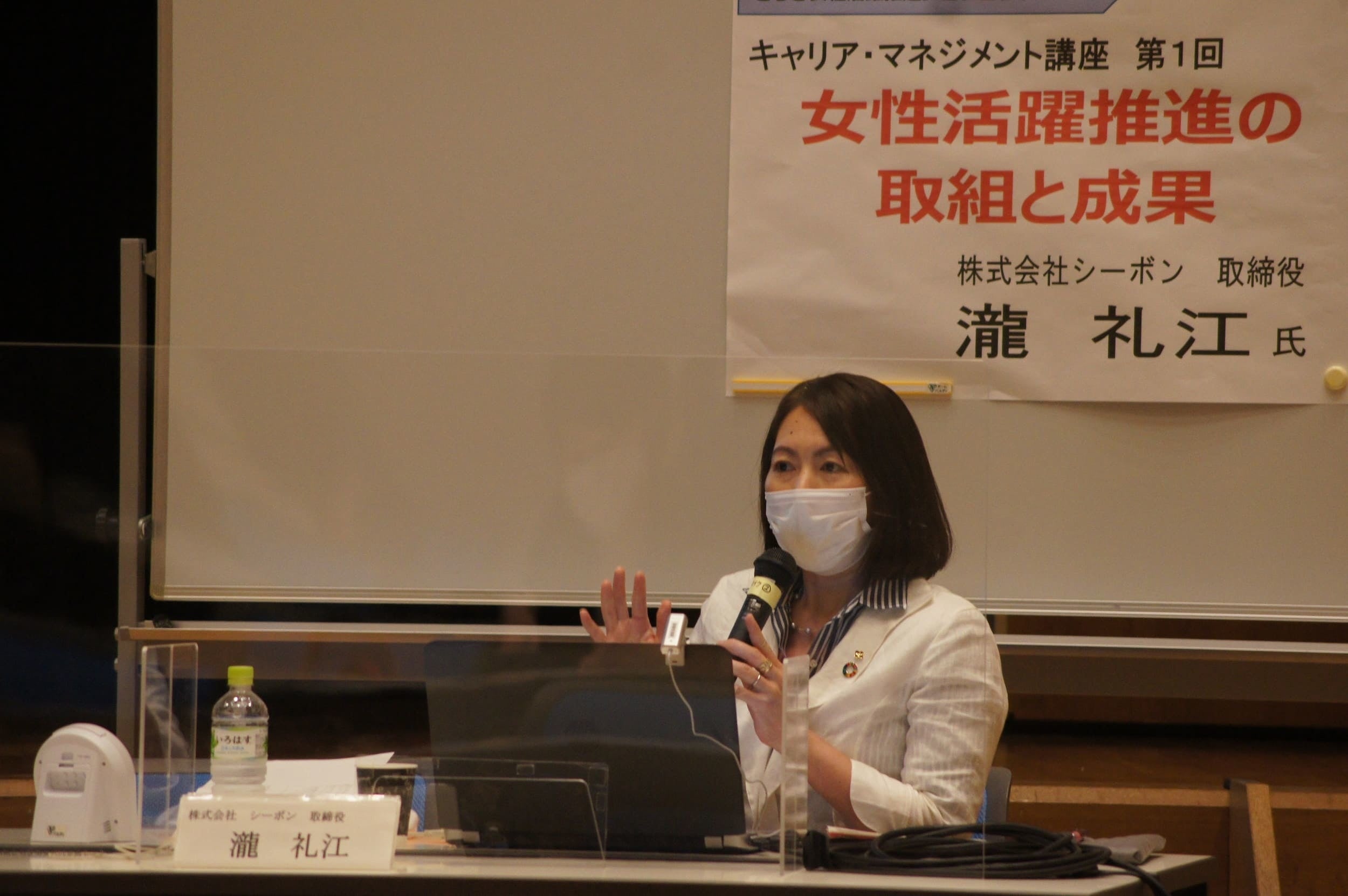 女性管理職比率が83%※を占める化粧品メーカーの株式会社シーボン(証券コード4926)取締役 執行役員 瀧礼江が、2022年7月1日(金)、生産拠点を置く栃木県、とちぎ男女共同参画センター主催のキャリア・マネジメント講座にて「女性活躍推進の取組と成果」についての講師を務めました。