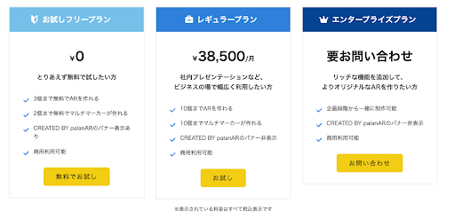 エンタープライズプラン:リッチな機能を追加しオリジナルのARを作成したい方向けプランです。(価格応相談)