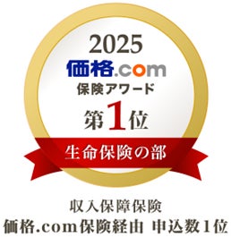 『FWD収入保障』は、「価格.com保険」において2024年1月~12月の期間に、生命保険の部、収入保障保険で最も申込件数が多かった保険商品に選ばれました。