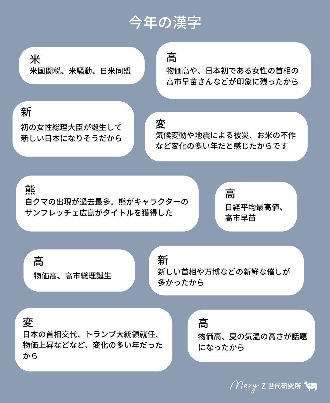 ■Z世代が選ぶ今年の漢字は、高市早苗氏の内閣総理大臣就任/物価高で「高」が1位に!