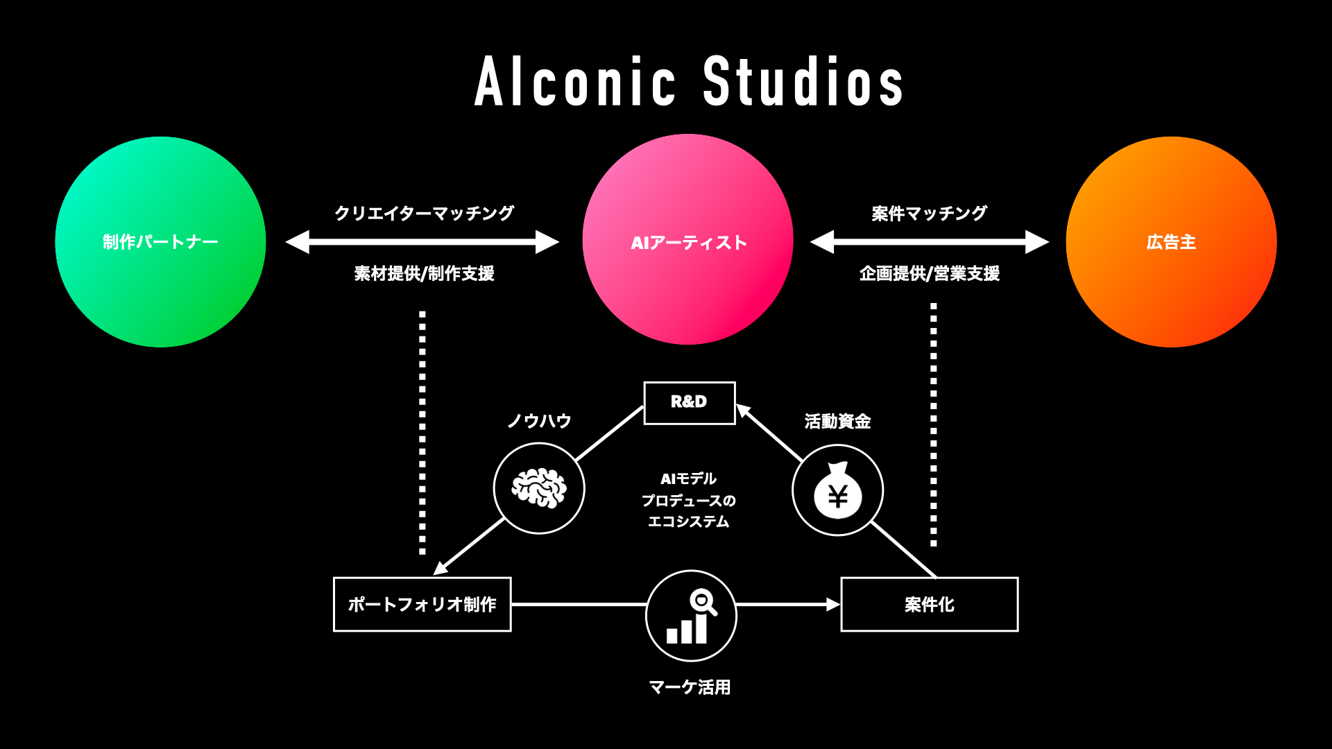 AI モデルエージェンシー「AIconic Studios」は、AI 研究を推進するクリエイターを軸にモデルを生成し、SNS アカウント運用及び投稿するヴィジュアルコンテンツの制作を行い、AI スターインフルエンサーのプロデュースを目指します。