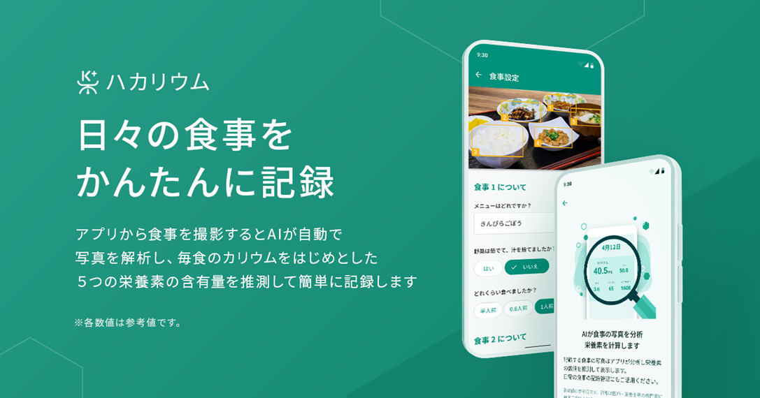 ~毎日の食事を撮影するだけでカリウムをはじめとした5つの栄養素の含有量を記録 両社共同で人々の健康に貢献する事業開発に従事~
