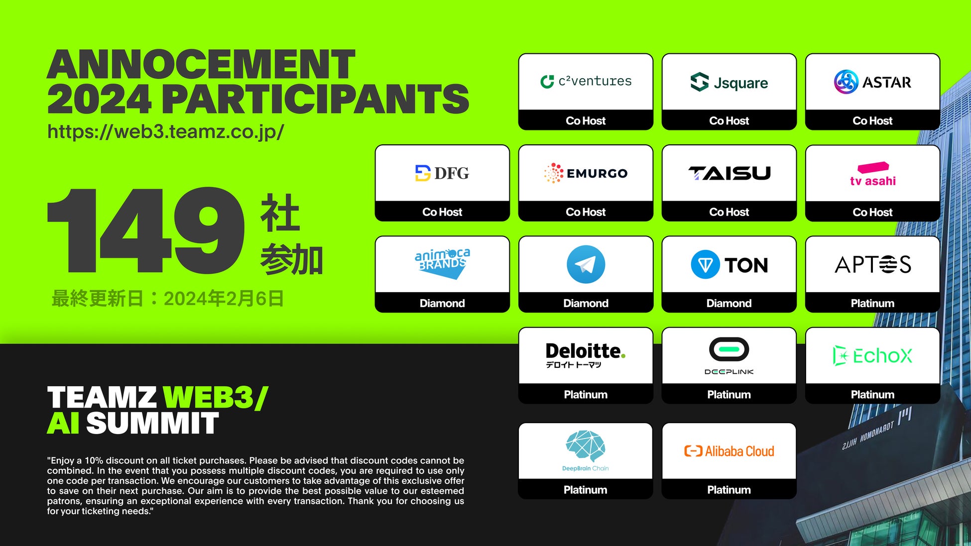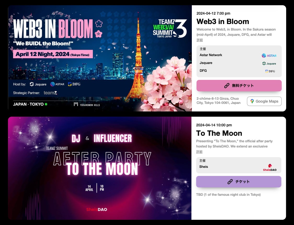TEAMZ WEB3/AI SUMMIT 2024は、現時点で国内外合わせすでに149社の参加が決定し、WEB3 WEEKのサイドイベントも続々登場!