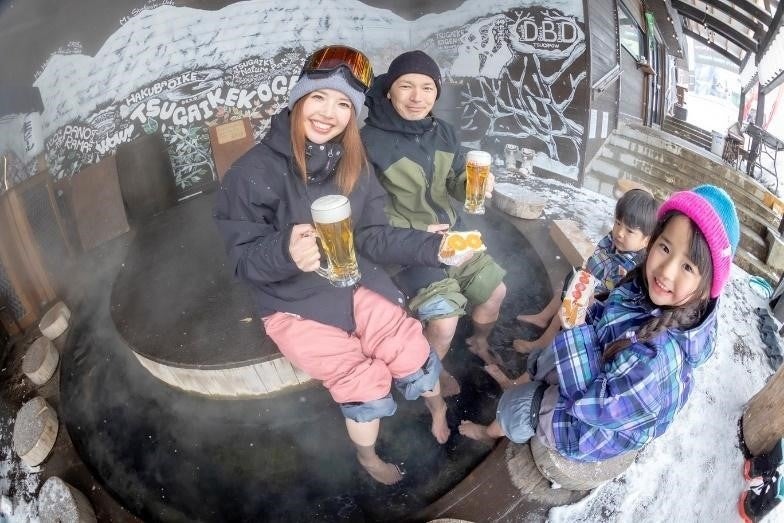 ゴンドラリフト「イヴ」山麓駅付近に「つがいけ横丁」には既存の「TSUGA BASE」「LOCARY」「つがのとり」「和牛ステーキTEPPAN」「鷲屋」に加え「OMU CHEF OSAKA」「Beer & Chips」「Lulu's Raclette」3店舗が新規オープンし、ヴィレッジツガイケの足湯とともにアプレスキーを楽しめる時間・空間を提供いたします。