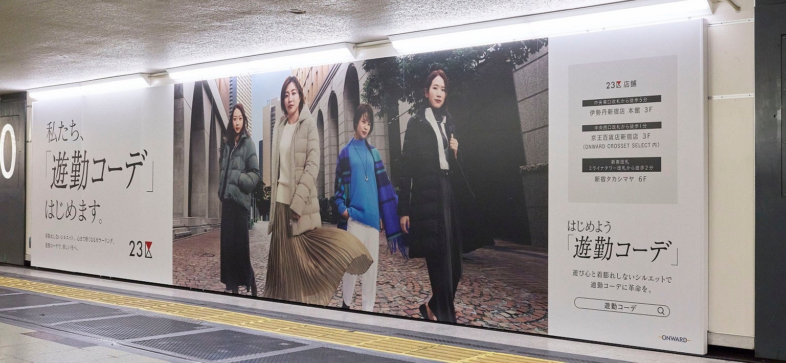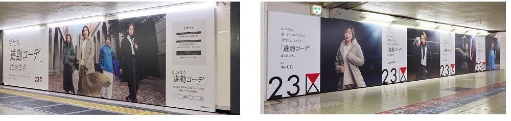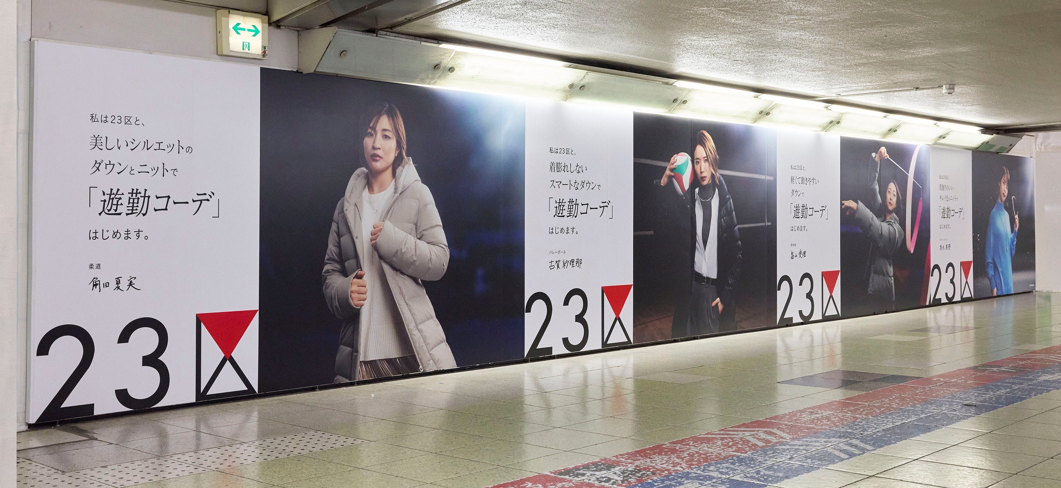 『23区』は、2024年10月初旬に定番シリーズアイテムである「シレータフタダウン」と「カシミヤブレンドニット」の販売をスタートしました。この度、そのアイテムを採用した冬の新しい通勤コーデ「遊勤コーデ」による提案を、アスリート4名のモデル起用した交通広告やYOUTUBE動画などSNSによる発信をしています。
