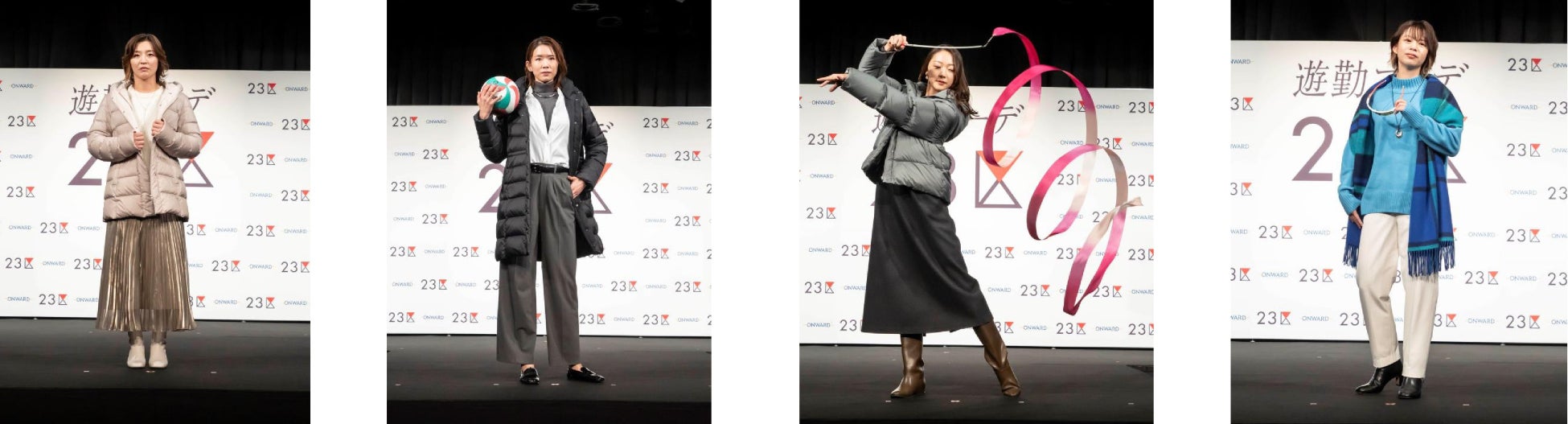 ランウェイショーの当日は、モデルに起用した話題のアスリート、柔道家 角田夏実選手、元バレーボール女子日本代表 古賀紗理那さん、元新体操日本代表 畠山愛理さん、元スピードスケート選手 髙木菜那さんら4名の同時ランウェイデビューとして、「遊勤コーデ」の生お披露目のほか、モデル&ランウェイデビューの感想や、残りわずかとなった今年1年の振り返りについて語るなど、トークセッションでも会場を盛り上げました。