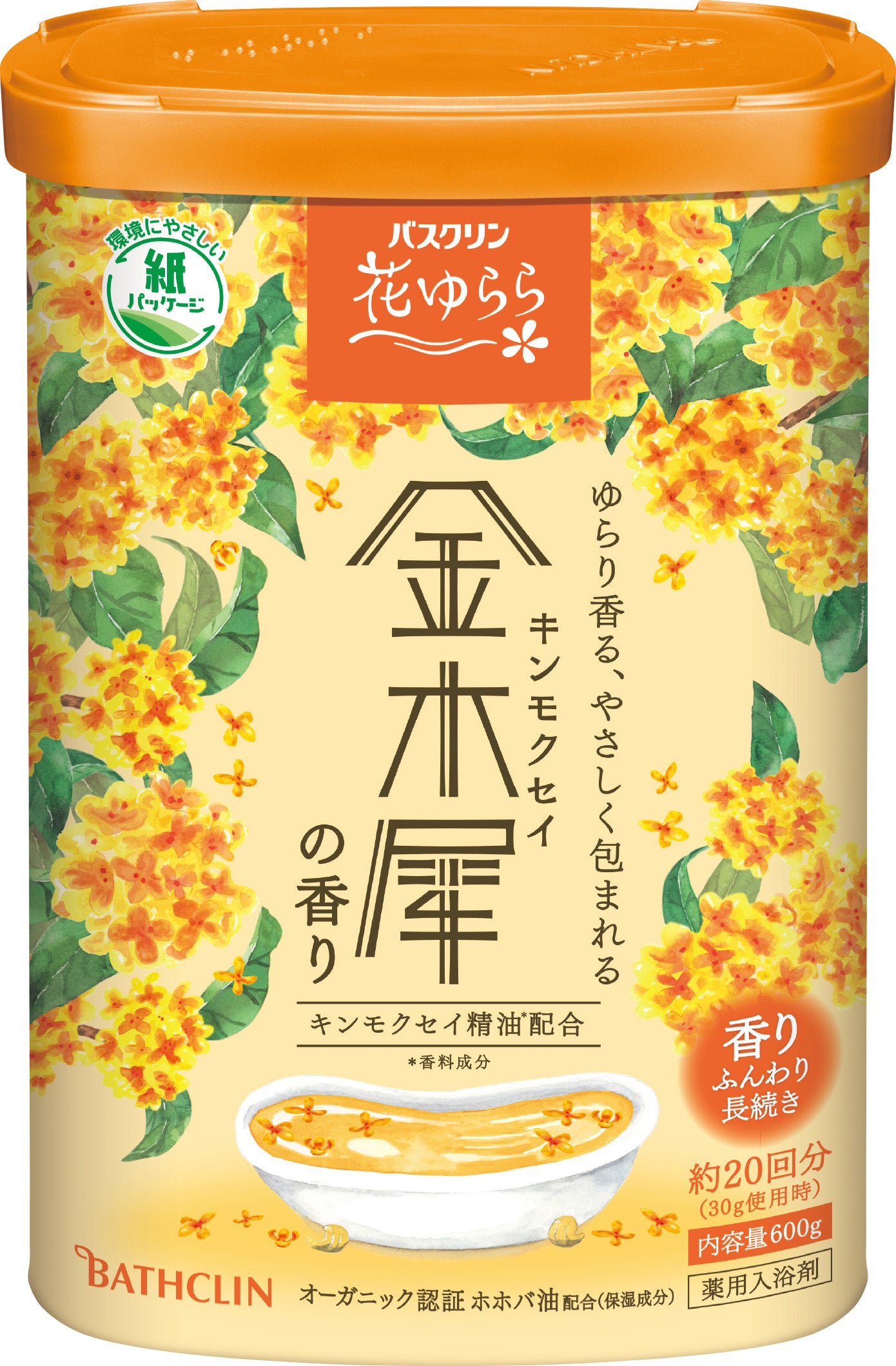 秋の訪れを感じる「金木犀(きんもくせい)の香り」でいやしのバスタイムを 「バスクリン 花ゆらら 金木犀の香り」8月22日新発売